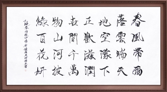 作为高级非遗书画传承师,他对书法的钻研尤为深厚。其书法师法古今名家,楷书端庄沉稳、骨力遒劲,行草流畅飘逸、神采飞扬,点画精到、章法和谐,尽显笔墨法度与人文气韵。“以书入画、书画同源”在他的作品中体现得淋漓尽致,书法的笔力支撑着绘画的骨架,绘画的意境丰富了书法的神韵,二者相辅相成,形成独特的艺术质感。其书法作品多次刊载于《中国文化品牌人物》《盛世中华》《盛世典藏》等权威书刊,以及中国文艺网(中国文联官网)、央广国际文化交流网、品牌中国等主流平台,笔墨风骨与文化气韵备受赞誉。